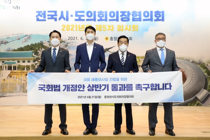 한편, 지난 5월 인천에서 열린 전국시도의회의장협의회 제4회 임시회에서는 국회세종의사당 건립을 위한 국회법 개정 촉구 건의안이 만장일치로 원안 가결된 바 있다.