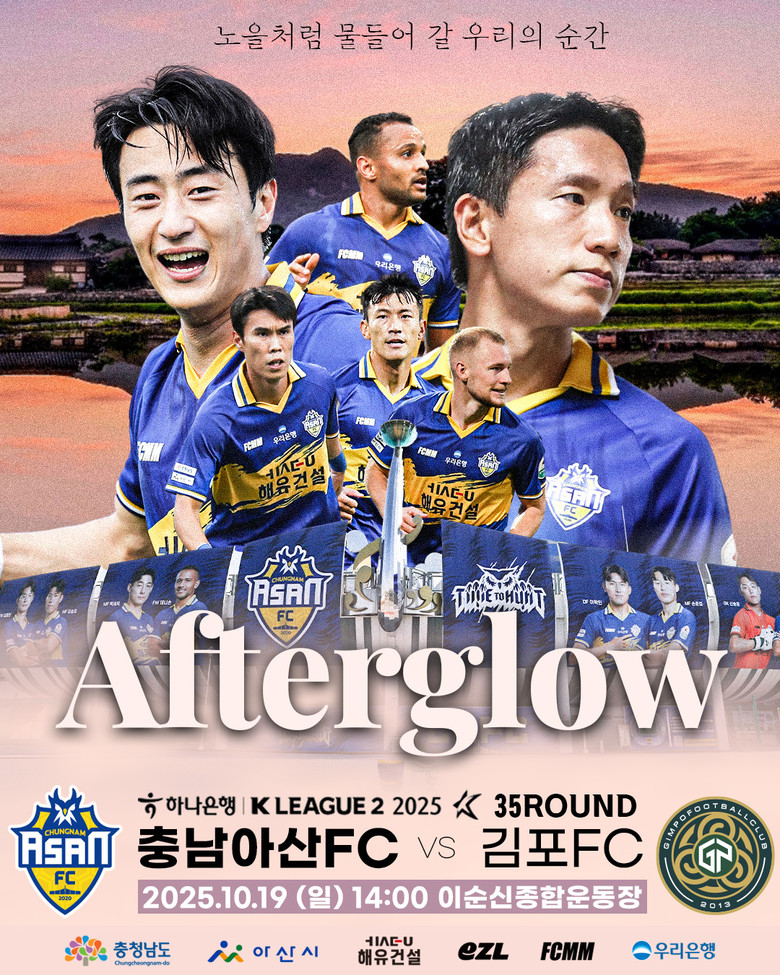 충남아산프로축구단(이하 충남아산FC)은 오는 19일(일) 오후 2시 이순신종합운동장에서 김포FC(이하 김포)와 ‘하나은행 K리그2 2025’ 35라운드 홈경기를 치른다.