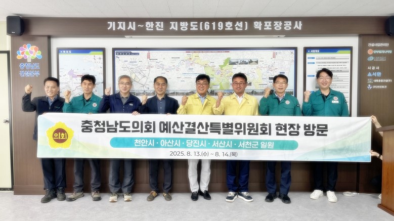 예결특위가 현장점검을 실시한 곳은 ▲서천 문산면 문장리 교량 설치 사업 ▲천안 풍서천 친수지구 조성 사업 ▲아산 용화동 공영주차장 조성 ▲서산 원천천 내 화천 1교 정비 ▲서산 청지천 하천 정비 ▲당진 지방도 619호선 확‧포장 사업 ▲당진 청소년수련관 건립 등 총 7개 사업 현장이다.