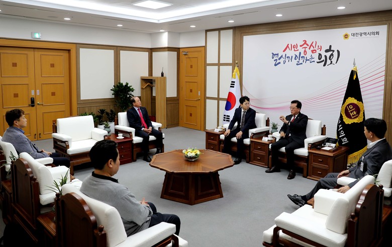 [대전 세계타임즈=이채봉 기자] 대전시의회 조원휘 의장은 18일 마라톤 정형외과 이정범 병원장을 초청해 감사패 수여 및 환담을 진행했다.
