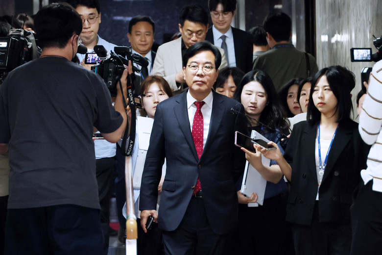 [세계타임즈 = 신상철 기자] 국민의힘 송언석 신임 원내대표가 17일 서울 여의도 국회에서 열린 초선 의원들과의 간담회에 참석하며 취재진의 질문을 받고 있다. 2025.6.17