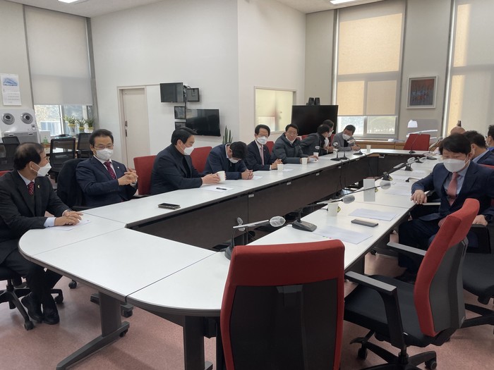 [대구=세계타임즈 한성국 기자] 대구광역시의회 장상수 의장은 10일(목) 오전 10시 30분 국회 김기현 국민의힘 원내대표실에서 열린 ‘군위군 편입 관련 대구·경북 국회의원 간담회’에 시·도지사와 함께 참석하여 대구시민의 입장에서 의견을 개진하고 군위군 편입 관련 법률안의 신속한 처리를 위해 힘을 보탰다.