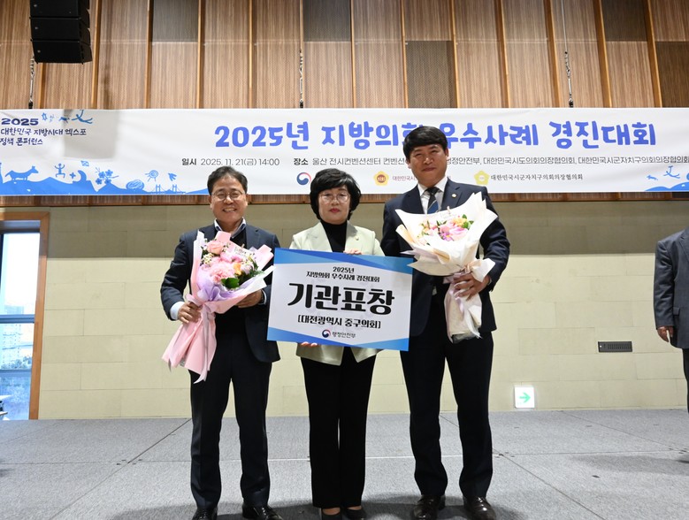 ‘2025년 지방의회 우수사례 경진대회’에서 총 8개의 자치단체가 자체 우수 사례로 선정되었으며 중구의회가 대전 지역 유일하게 기관 표창을 수상하는 영예를 안았다.