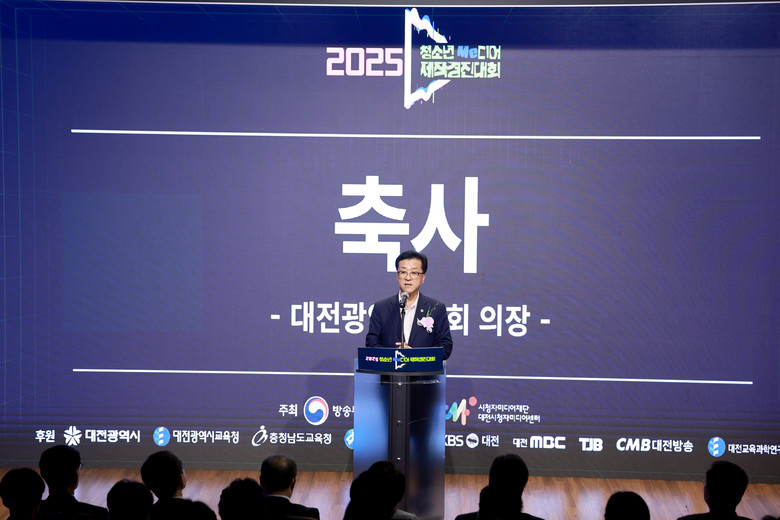 [대전 세계타임즈=이채봉 기자] 대전시의회 조원휘 의장은 14일 대전시청자미디어센터에서 개최된 2025 청소년 미디어제작 경진대회 시상식에 참석해 대회의 성공적 개최를 기원하며 지역사회에 대한 청소년들의 높은 관심과 열정을 응원했다.