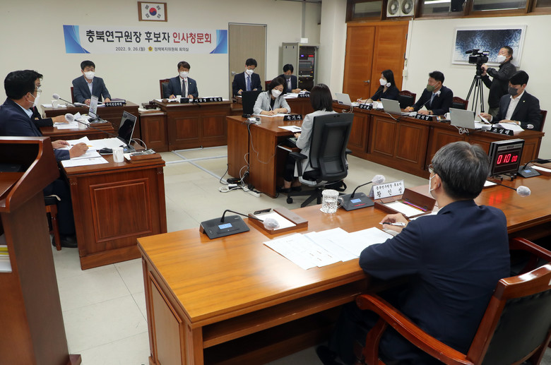 이 위원장은 “후보자의 답변에서 여러 가지 아쉬운 점이 있었지만, 향후 충북 도정의 정책 전문 연구기관의 수장이 된다면 책임감 있는 태도와 자세로 도민을 위해 노력을 기울여 주시기를 부탁한다.”고 당부했다.