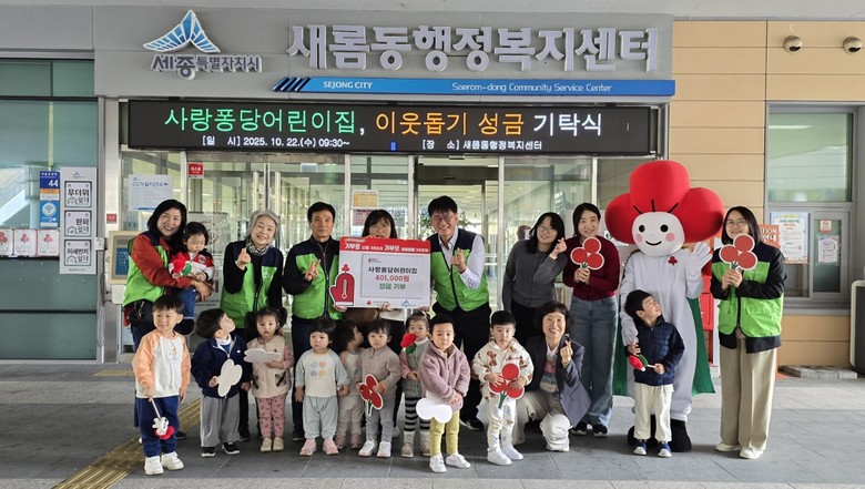[세종 세계타임즈=이채봉 기자] 세종특별자치시 새롬동 사랑퐁당어린이집(원장 정미연)이 22일 새롬동지역사회보장협의체(공동위원장 강신우·김지원)에 아나바다 수익금 40만 1,000원을 기부했다.