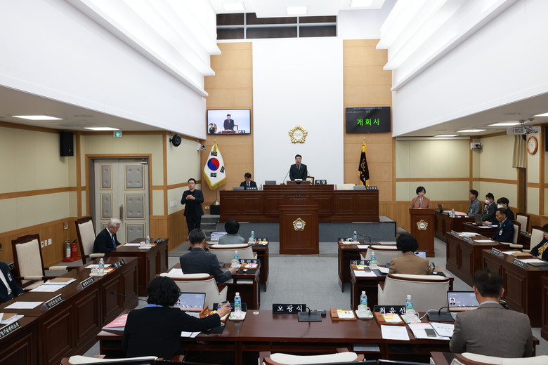 오광석 의장은 개회사를 통해 “이번 임시회가 지역 발전과 군민 복지 증진에 기여할 수 있도록 최선을 다 하겠다”고 말했다. 또한, “앞서 발생한 부남면 산불에 대해 잔불 정리를 철저히 마무리하고 피해 복구와 재발 방지를 위한 대비책을 마련하는 데 최선을 다해달라”고 당부했다.