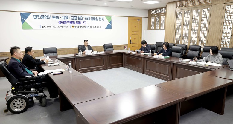[대전 세계타임즈=이채봉 기자] 대전시의회 의원연구회 ‘더 좋은 조례 연구회’(회장 김영삼 의원)는 17일 시의회 공감실에서 「대전광역시 문화·체육·관광 분야 조례 정합성 분석 연구」 최종보고회를 개최했다.