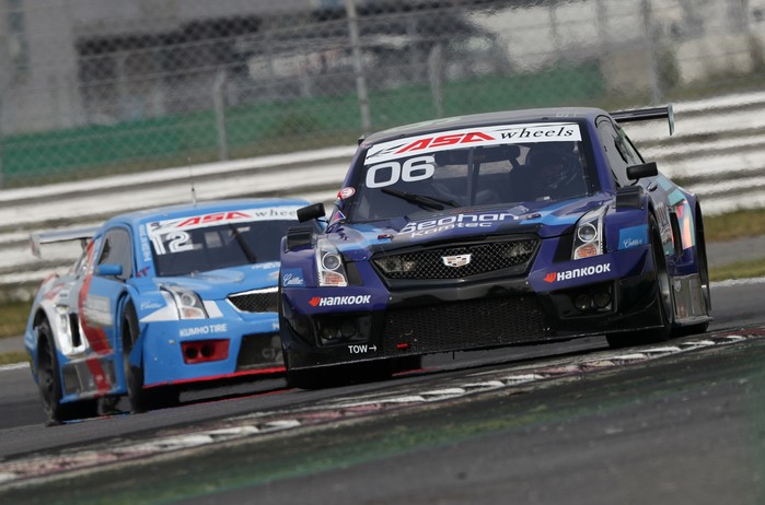 [사진설명] 서한 GP의 장현진(오른쪽)이 4일 KIC에서 열린 2019 CJ대한통운 슈퍼레이스 챔피언십 5라운드 ASA 6000 클래스 결승 레이스에서 황진우의 추월시도를 막으며 달리고 있다.