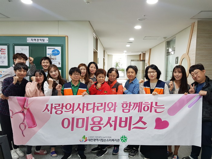 [대전=세계타임즈 이장성 기자] SNS 대전시봉사단체 사단법인 사랑의 사다리(리더 이정제) 밴드는 15일 오전10시, 대전시립손소리복지관(관장 유형걸) 4층에서 농아인들에게 미용봉사로 우리 사회의 따뜻한 사랑을 실천하였다.