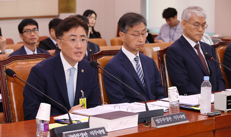 1일 국회에서 열린 법제사법위원회 전체회의에서 이진수 법무부 장관 직무대행(왼쪽)이 의원 질의에 답변하고 있다. 2025.7.1