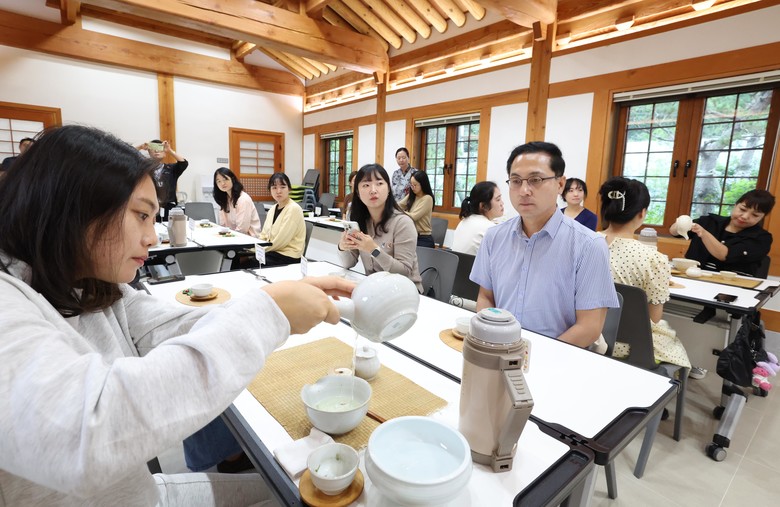 첫 회차인 이날 체험에는 박희조 동구청장을 비롯해 영유아 부모 20여 명이 참여해 전문 강사의 지도 아래 차를 우리고 마시는 전통 다도 예절을 배우고, 전통 향을 활용한 명상 활동을 통해 감각을 깨우며 마음을 다스리는 시간을 가졌다.