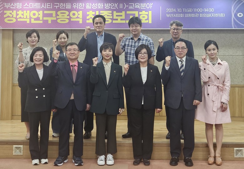 [부산 세계타임즈=이용우 기자] 부산광역시의회‘스마트시티 리빙랩’(대표 임말숙 의원) 의원연구단체는 11일(금) 13시 부산시의회 의원회관 회의실(지하 1층)에서 ‘부산형 스마트시티 구현을 위한 RISE 성공적 모델 제시 및 IB교육 적용 방안 연구’ 용역 최종보고회를 개최했다.