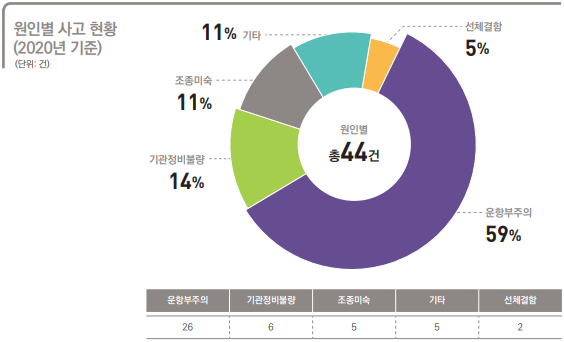 한편, 통계자료에 의하면 수상레저기구중 모터보트 사고가 41%로 가장 많고, 운항부주의로 인한 사고가 59%에 달하는 것으로 나타났다.