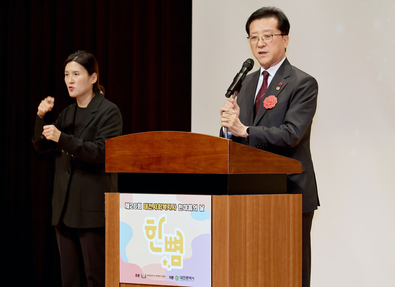 [대전 세계타임즈=이채봉 기자] 대전시의회 조원휘 의장은 7일 한국효문화진흥원에서 개최된 ‘제26회 대전사회복지사 한마음의 날’에 참석해 “대전시의회는 복지 일선에서 헌신하는 사회복지사의 처우 향상과 근무 환경 개선을 위해 최선의 노력을 다하겠다”고 각오를 밝혔다. 이날 조원휘 의장은 축사와 함께 사회복지사 유공자에게 표창을 시상하며 도움의 손길이 필요한 이웃에게 희망을 전하는 사회복지사들의 노고에 감사의 마음을 전했다.