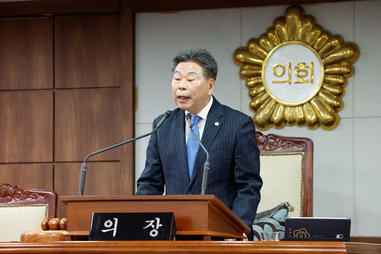강형구 의장은 개회사를 통해 “지난 15일, 순천대와 목포대가 대학 간 통합에 합의한 만큼 순천시의회도 우리 지역 의대 설립을 위한 지원을 아끼지 않겠다”고 말하며, “의원님들께서는 행정사무감사를 통해 건설적이고 미래지향적인 정책 대안을 제시해 주시길 바란다”고 당부했다.