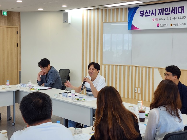 이날 간담회는 작년 부산시의회 김태효의원(국민의힘, 재송1·2동, 반여2·3동)이 발의하여 제정된 「부산시 끼인세대 지원 조례」에 따른 ‘부산시 끼인세대 지원 종합계획’에 반영될 시책들을 수혜당사자들로부터 직접 찾아보고자 개최됐다. 끼인세대에 해당하는 시민 20명, 부산시의회 김태효의원, 반선호의원(더불어민주당, 비례), 부산시 김영심 일자리노동과장, 부산연구원 최청락 책임연구원 등이 참석했다.