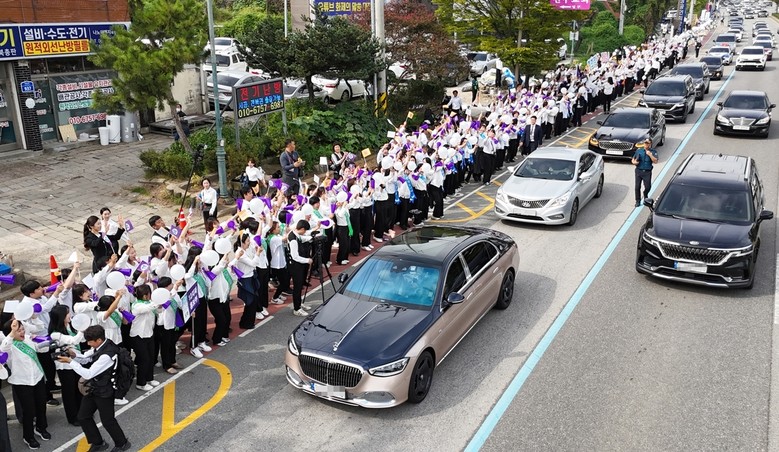 또 일찍부터 찾아준 참석자들을 위해 신천지예수교회 성도들은 전주IC 인근 ‘호남제일문’부터 행사장까지 1km 이상의 거리에 늘어서 다양한 퍼포먼스로 환영했다. 전통의상을 입은 군악대와 농악대가 거리를 행진하며 전도 대성회를 축제의 장으로 이끌었다.