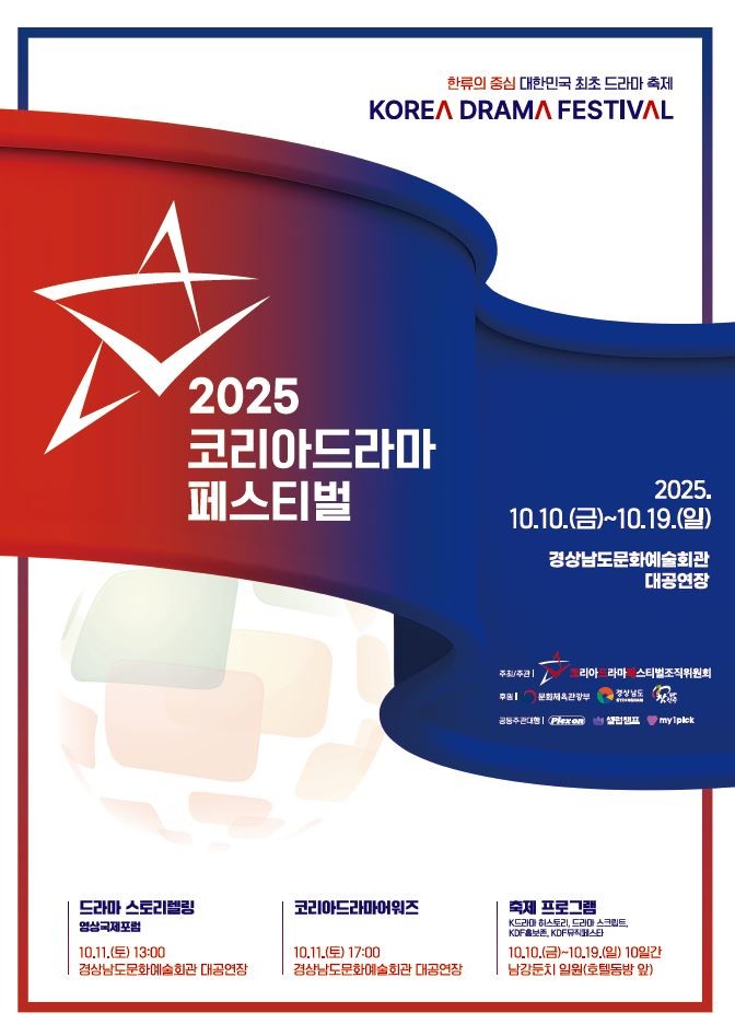 - K 드라마 품격을 높인 13개 분야 19개 드라마 시상 [세계타임즈=경남 최성룡 기자] 경상남도(도지사 박완수)는 10월 10일부터 19일까지 진주시 장대동 남강변과 경남문화예술회관일원에서 ‘2025 코리아드라마페스티벌(Korea Drama Festival, 이하 KDF)’이 개최된다고 밝혔다.
