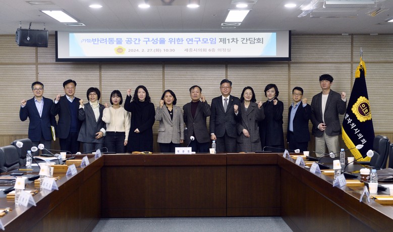 [세종 세계타임즈=이채봉 기자] 세종특별자치시의회(의장 이순열)는 27일 오전 10시 30분 의회청사 의정실에서 ‘반려동물 공간 조성을 위한 연구모임(대표의원 박란희)’을 발족하고 첫 번째 간담회를 개최했다.