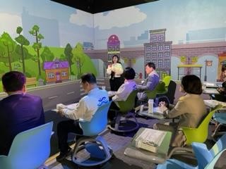 이번 방문은 ‘스마트시티 리빙랩’의 회장인 임말숙(해운대구2)의원과 부회장 이승연(수영구2)의원 이외에 회원인 강주택의원(중구), 김효정의원(북구2), 박희용의원(진구1) 등이 참석하여, 메타버스를 활용한 교육을 위해 평소 교사들이 받는 교육 커리큘럼에 따라 약 2시간 동안 강의를 듣고 실습을 해 볼 수 있는 기회를 가졌다.