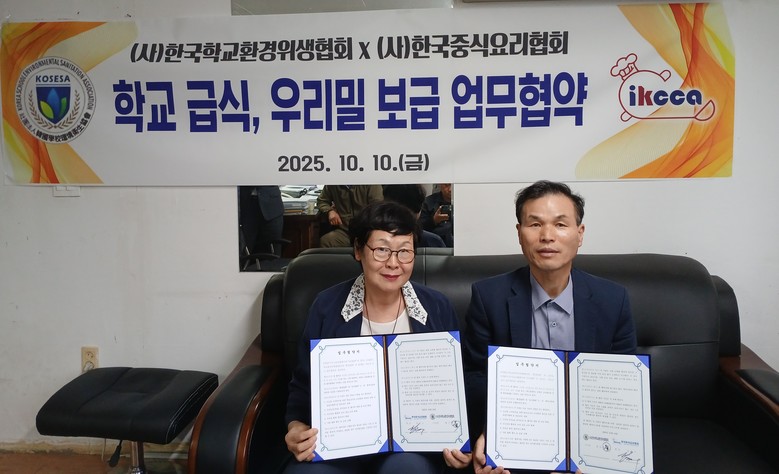 (사)한국중식요리협회와 (사)한국학교환경위생협회는 지난 10일 업무협약(MOU)을 체결하고, 학교급식과 지역사회, 가정 등 생활 전반에서 국산밀 소비를 촉진하는 공동사업을 추진하기로 했다.