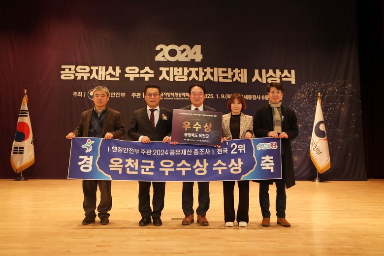 - 2023년 대통령상에 이은 2년 연속 공유재산 분야 우수지자체 선정 [세계타임즈=옥천군 이현진 기자] 옥천군은 올해 행안부 주관 ‘2024년 공유재산 총조사’로 전국 2위 우수기관에 선발되면서 우수상과 특별교부세 6천만 원을 수상했다고 9일 밝혔다.