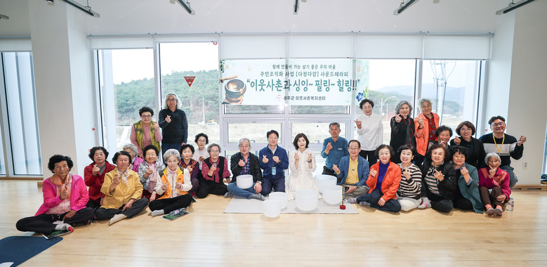 [성주군 세계타임즈=한윤석 기자] 성주군 이웃사촌복지센터는 3월 27일 선남면 반다비체육센터에서 성원1리 마을주민 20여명과 함께 3월 다정다감 프로그램 ‘싱잉볼 사운드테라피’를 진행했다.