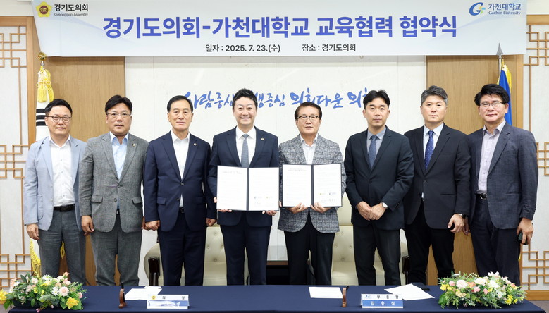[경기도 세계타임즈=송민수 기자] 경기도의회(의장 김진경)는 23일 가천대학교와 교육협력 및 학술교류를 위한 업무협약(MOU)을 체결했다.