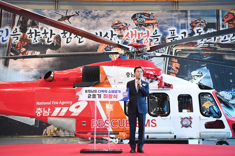 이 자리에서 김태흠 지사는 “충남은 접근이 어려운 산림이 절반이며, 섬은 280개가 넘고, 대형병원도 멀리 떨어져 있어 ‘재난안전 사각지대’와 ‘응급의료 취약 지역’이 산재해 있다”며 “이런 여건 속에서 취항하는 소방헬기 2호기는 ‘하늘의 소방차’이자 ‘응급실’로서 재난 대응과 중증환자 이송에 큰 힘이 될 것으로 기대한다”고 말했다.