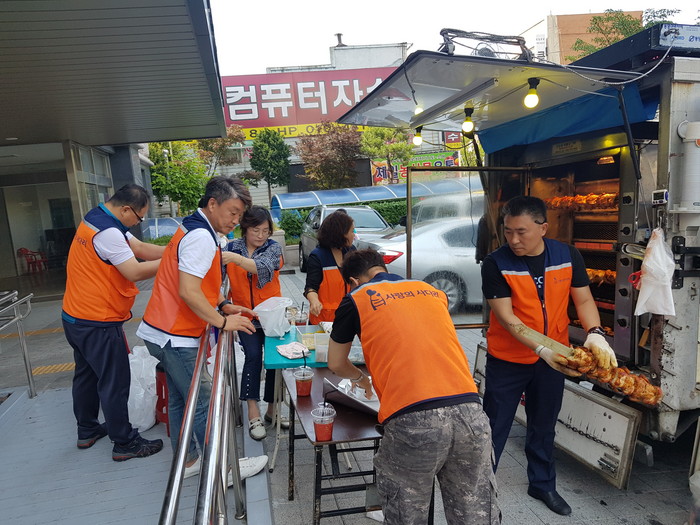 신상일 바베큐 통닭 봉사 회장은 “더운 날씨였지만 오븐에서 직접 구은 바베큐 통닭을 맛있게 드시는 농아인들의 모습에서 행복과 보람을 느낀다.“고 말했다.