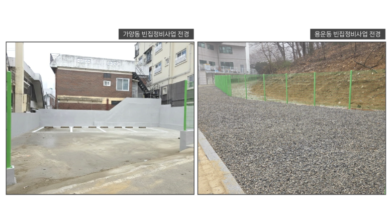 구는 이번 사업을 통해 가양동 298-37번지와 용운동 201번지에 위치한 빈집 2개소를 철거하고, 해당 부지에 공용주차장을 조성했다. 특히, 용운동 대상지는 향후 도시계획시설과 연계한 공공 활용이 가능하도록 기반 정비를 함께 추진했다.