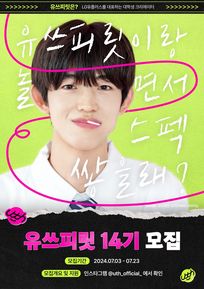 지원서는 오는 23일까지 LG유플러스의 유쓰 공식 인스타그램 내 유쓰피릿 14기 모집 게시글에 첨부된 온라인 지원서 링크를 통해 사전미션 과제물과 함께 제출하면 된다. 이후 면접을 거쳐 최종 합격자는 8월 7일 개인 이메일을 통해 안내된다.