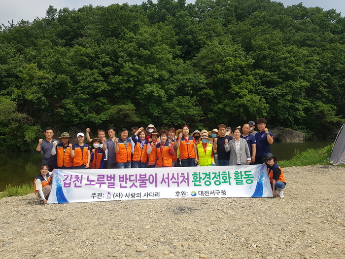 서구청 환경과 김형철 과장은 “오늘 갑천 노루벌 반딧불이 서식처에서 수중·수변 환경 정화 봉사를 주관한 사랑의 사다리 밴드 봉사단체에 감사함을 전한다.”고 말했다.
