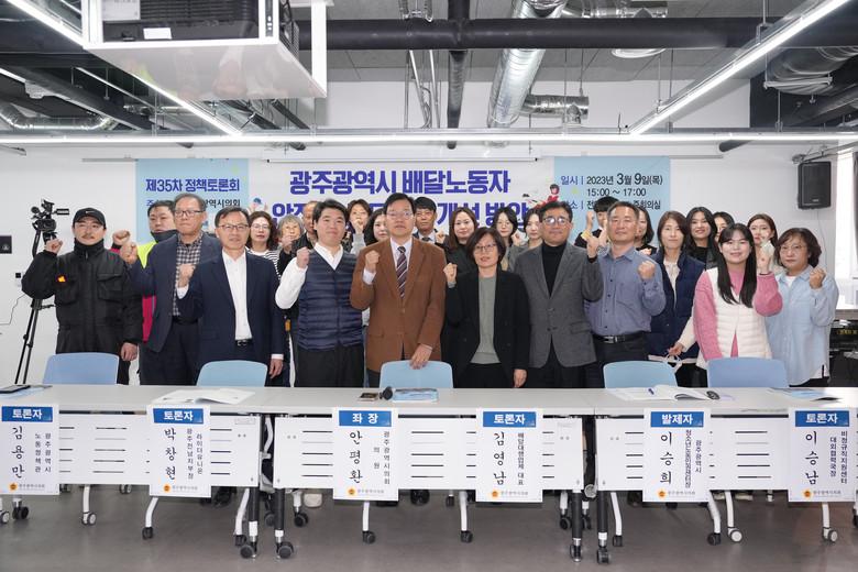 이번 토론회는 광주광역시의회 주최로 이승희 광주청소년노동인권센터장이 발제에 나섰으며, 토론자는 이승남 비정규직지원센터 대외협력국장, 김영남 배달대행업체 대표, 박창현 라이더유니온 광주전남지부장, 김용만 광주광역시 노동정책관이 참여했으며 좌장은 안평환의원이 맡아 진행됐다.