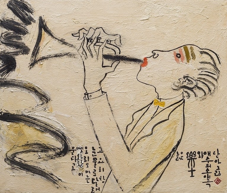 | ▲ 드로잉전_김병종, 늙은 악사와 애수의 소야곡(1998) |
