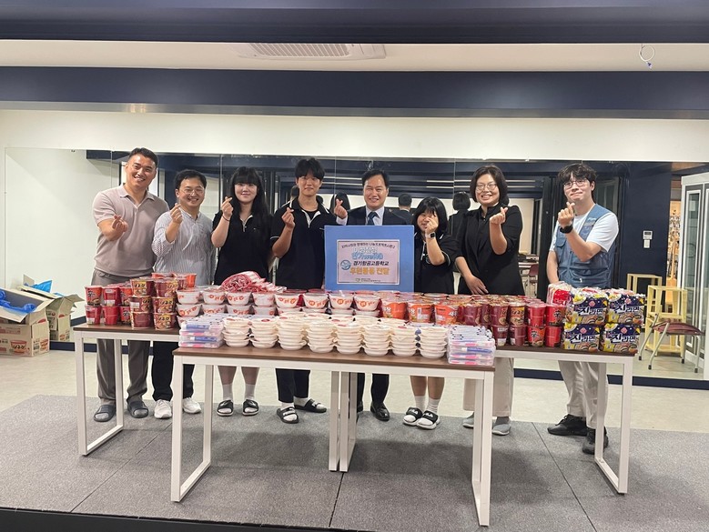 [광명시 세계타임즈=송민수 기자] 광명시 소재 경기항공고등학교(교장 유형진)는 2023. 9. 11.(월) 광명시립하안노인종합복지관에 2023년 지역사회와 함께하는 나눔 프로젝트 ‘이심전심 한가we(위)’ 사업의 일환으로 ‘라면, 즉석밥, 양치 세트’ 등의 생활필수품을 기부했다.