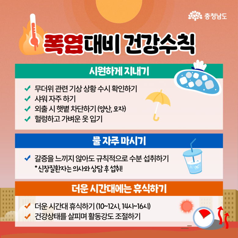 특히 건설현장과 농어촌, 산업단지 등 야외 작업자가 많은 지역에는 폭염 특보 발령 시 ‘무더위 휴식 시간제(Heat Break)’를 적극 홍보하고 있으며, 군 발주 공사현장에도 해당 내용을 반영해 현장 노동자의 안전 확보에 만전을 기하고 있다.