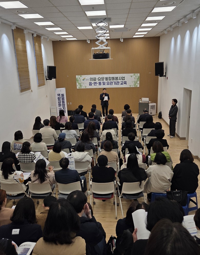 [여주시 세계타임즈=송민수 기자] 여주시(시장 이충우)는 지난 19일, 의료.요양 통합돌봄사업 본격 시행(’26.3.27.)을 위해 읍·면·동 및 유관기관 종사자를 대상으로「의료.요양 통합돌봄사업」교육을 실시했다.