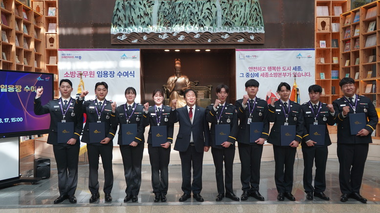 세종소방본부(본부장 박태원)는 17일 시청 책문화센터에서 최민호 시장, 박태원 소방본부장, 신규 임용자, 가족 등 20여 명이 참석한 가운데 ‘소방공무원 임용식’을 열었다.
