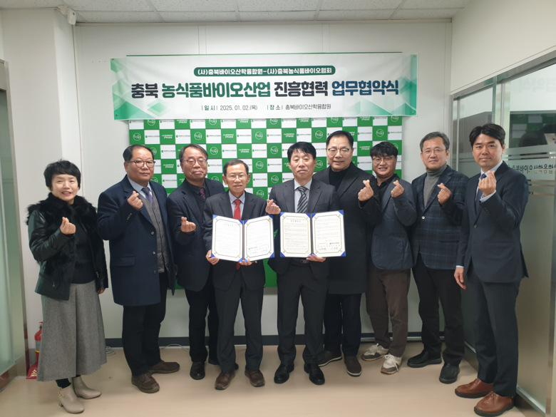 (사)충북바이오산학융합원(원장 이장희)과 (사)충북농식품바이오협회(회장 정준영)는 충북 지역 농식품바이오산업의 진흥과 경쟁력 강화를 위한 업무협약을 체결했다. 이번 협약은 양기관의 정보를 적극 상호교환하고 협력관계를 공고히 하는 데 목적이 있다.