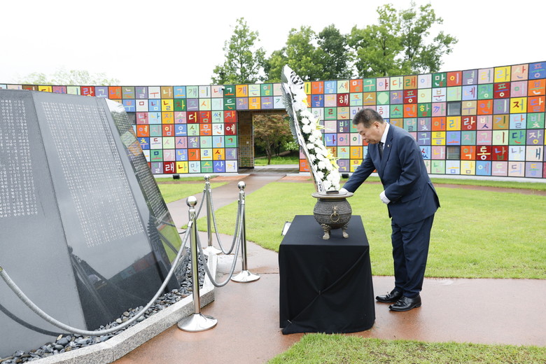 강형구 의장을 비롯한 오행숙 부의장, 김영진, 장경순, 김미연, 이향기 위원장 등 제9대 순천시의회 후반기 의장단 및 각 상임위원장은 3일 순천만국가정원 내 현충정원을 찾아 헌화와 분향을 한 후 순국선열과 호국영령에 추모하고, 그 뜻을 이어받아 시민을 위한 의정활동을 펼치겠다는 각오를 다졌다.