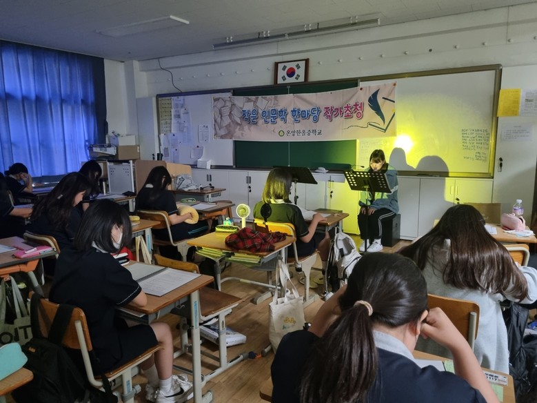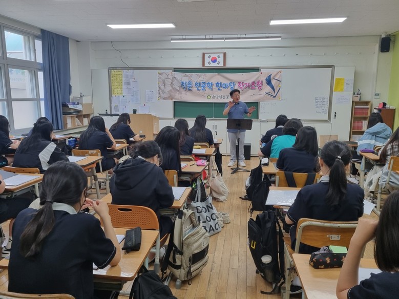 [아산시 세계타임즈=백택기 기자] 온양한올중학교(교장 박성병)은 20일(화) <연극, 소설을 만나다>의 이인호 작가를 초청하여 ‘2023 작가 초청 인문학 한마당 강연회’를 열었다. ‘공연예술 창작소 펴다’의 대표이자 충남 청소년 문학상, 충남 학생 연극 축제, 충남 청소년 영화제 심사위원인 이인호 작가는 <연극, 소설을 만나다>를 비롯하여 <우리 연극해요>, <학교에서 낭독극 하기>등 다수의 책을 발간한 저자이자 충남 낭독극 한마당 지원단의 대표이다.