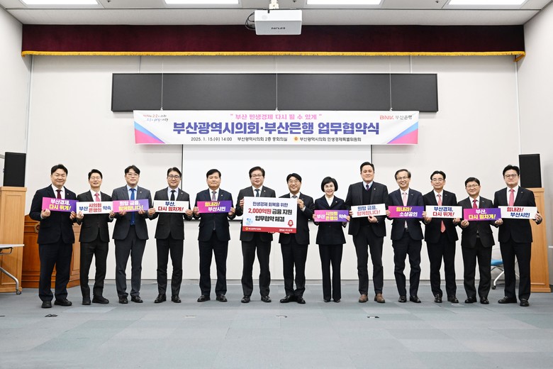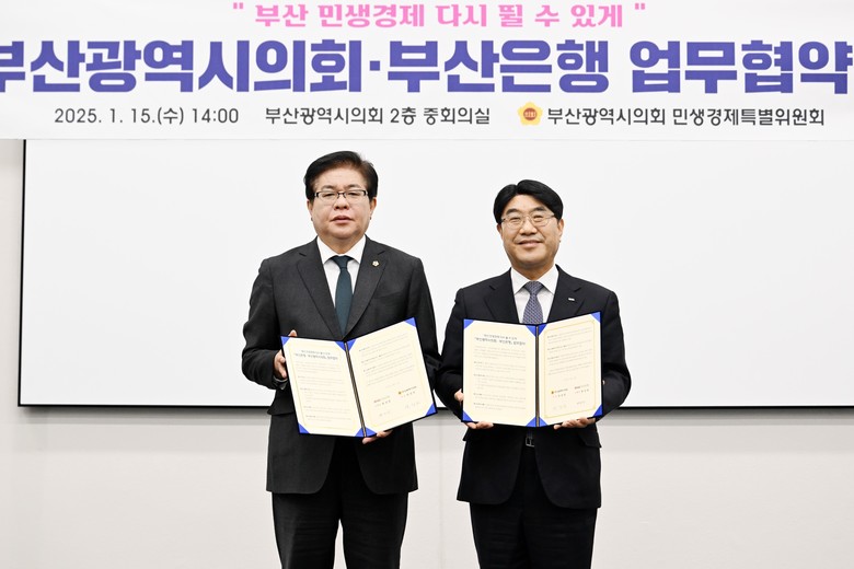 [부산 세계타임즈=이용우 기자] 부산광역시의회는 오는 1월 15일 14시 부산시의회 2층 중회의실에서 민생경제 회복을 위한 업무협약을 BNK부산은행과 체결한다고 밝혔다.