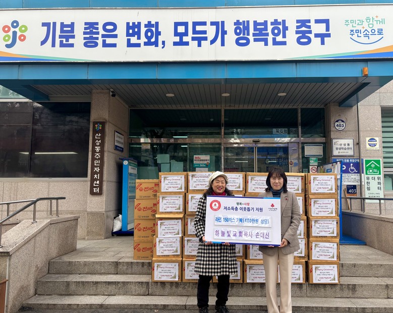 김은정 동장은 “하늘빛교회의 지속적인 나눔 활동에 깊이 감사드린다”라며, “이번 기탁으로 지역 내 어려운 이웃들에게 큰 도움이 될 것이며, 지역사회가 함께 어려운 이웃을 돌보는 데 계속해서 힘을 모으겠다”라고 답했다.