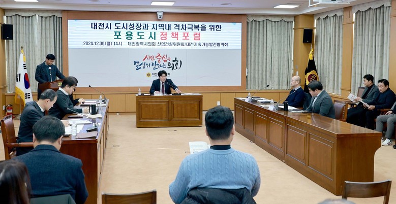 [대전 세계타임즈=이채봉 기자] 대전시의회 산업건설위원회와 대전지속가능발전협의회가 공동으로 주관하는 ‘대전시 도시성장과 지역내 격차극복을 위한 포용도시 정책포럼’이 30일 대전시의회 소통실에서 열렸다.
