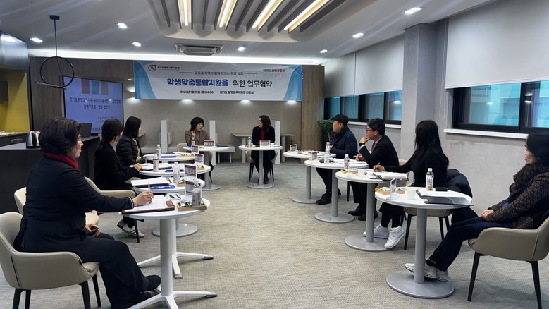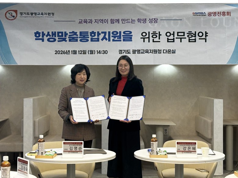 [광명시 세계타임즈=송민수 기자] 경기도광명교육지원청(교육장 김명순)은 2026년 1월 12일(월) 오후 2시 30분, 경기도광명교육지원청 별관 3층 다온실에서 사단법인 경기중소벤처기업연합회 광명진흥회(회장 강은혜)와 함께 학생맞춤통합지원을 위한 정담회 및 업무협약(MOU)을 체결했다.