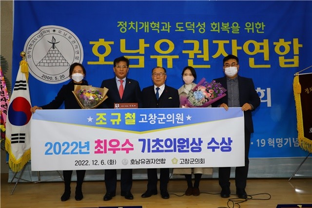 [고창군 세계타임즈 = 강옥선 기자] 고창군의회(의장 임정호) 조규철 의원은 6일 호남유권자연합이 선정하는 ‘2022 최우수 기초의원’으로 선정돼 수상의 영예를 안았다.