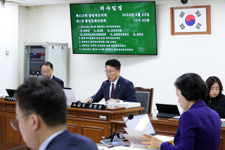 [충북 세계타임즈=이현진 기자] 충북도의회 행정문화위원회(위원장 노금식)는 23일 제416회 임시회 1차 회의를 열고 2024년도 1회 추가경정예산안과 충청북도 한국자유총연맹 지원 조례안 등 5개 안건을 심의·의결했다.