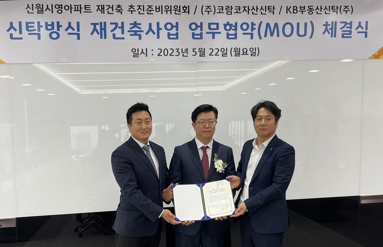 [세계타임즈 = 이송원 기자] 코람코자산신탁은 ‘신월시영아파트 신탁방식 재건축 성공적 추진’을 위해 신월시영아파트 재건축 추진준비위원회 및 KB부동산신탁과 3자간 업무협약을 맺었다고 22일 밝혔다.